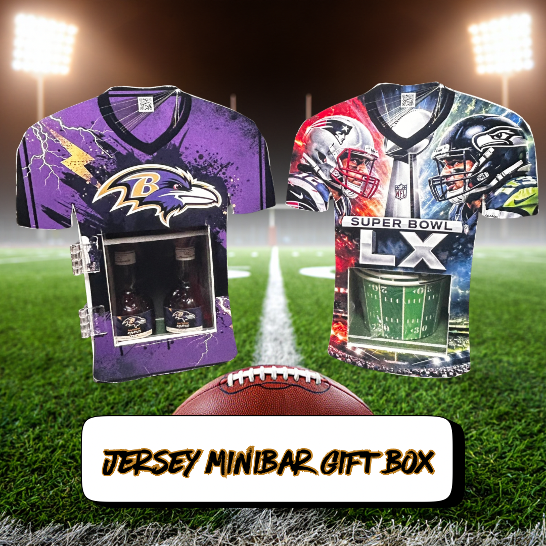 The Jersey MiniBar Vault transforms your favorite jersey silhouette into a premium, handcrafted mini bar built for fans who love to sip, celebrate, and show off. Designed from durable foam board with a clean, collectible finish, this compact 8” x 10” vault holds miniature bottles, shot glasses, and game‑day essentials with style.