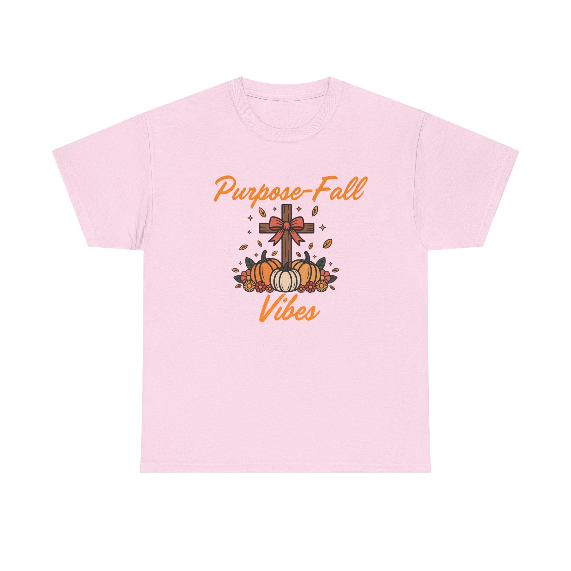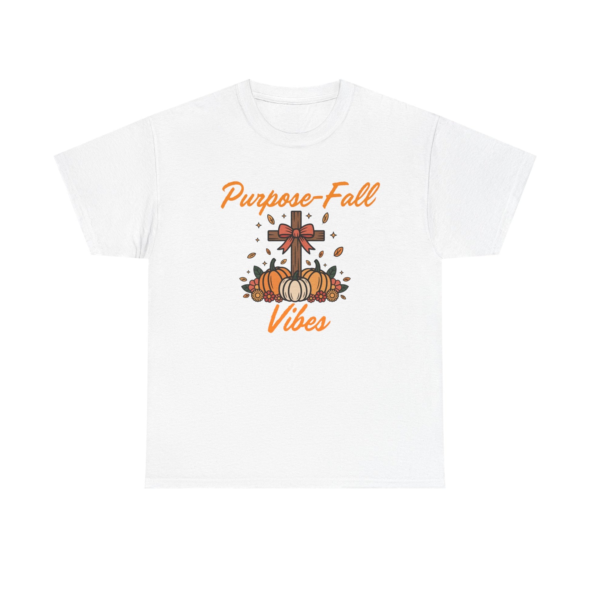 Purpose-Fall Vibes Unisex Tee with Cross and Pumpkins